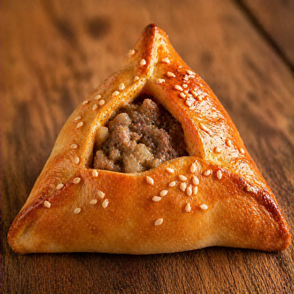 Треугольник с мясом и картофелем, запечённый в слоёном тесте.