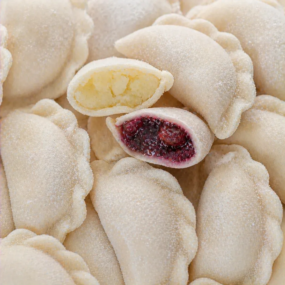 Сладкие вареники с вишневой начинкой без сахара.