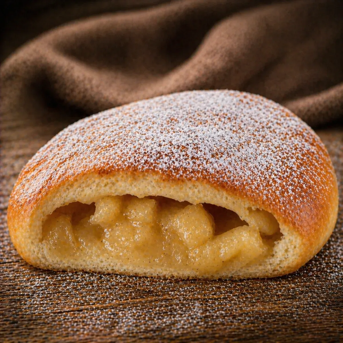 Пирожок с яблочной или вишнёвой начинкой, сахарная пудра.